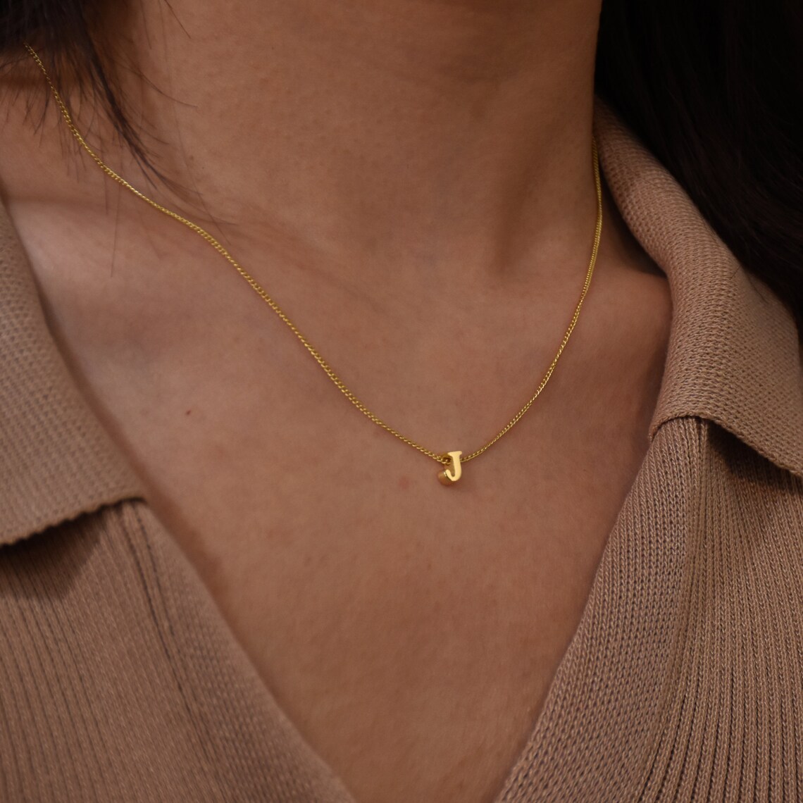 Stainless Steel Letter Necklace with Brass Pendant