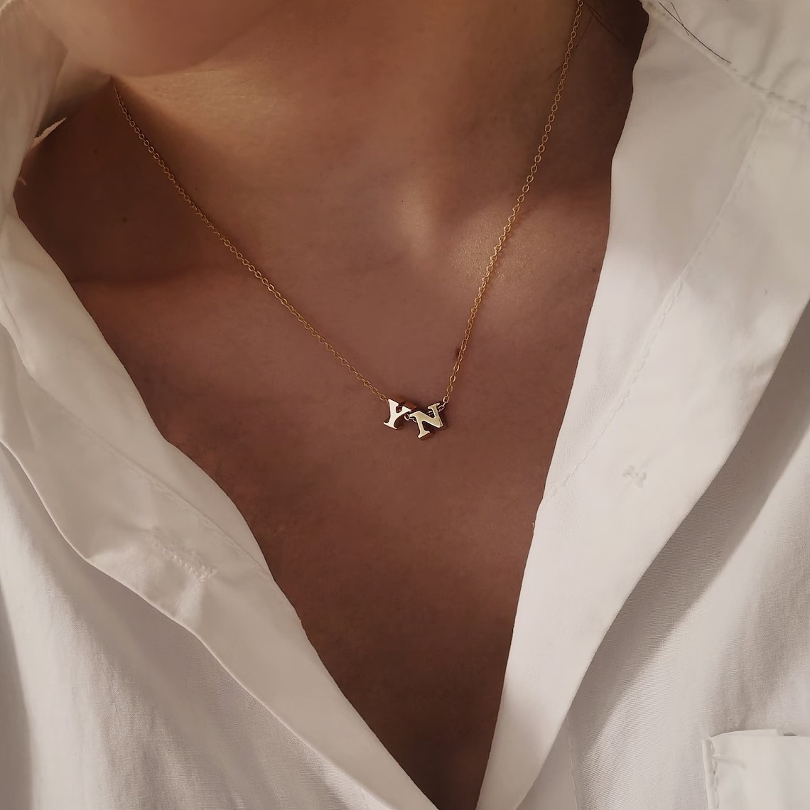 Stainless Steel Letter Necklace with Brass...